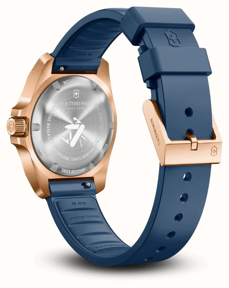 Женские швейцарские наручные часы Victorinox 242035 с защитным корпусом и эксклюзивным ремешком, станет универсальным аксессуаром на все случаи жизни. I.N.O.X. V. 12-ти и 24-х часовой формат времени. Противоударный корпус. Устойчивы к перепадам температур. Съемный защитный бампер. Завинчивающаяся заводная головка с защитой. Завинчивающаяся задняя крышка. Сапфировое стекло с тройным антибликовым покрытием. Водонепроницаемость до 100 м. Диаметр 32 мм. Вес 58 гр.